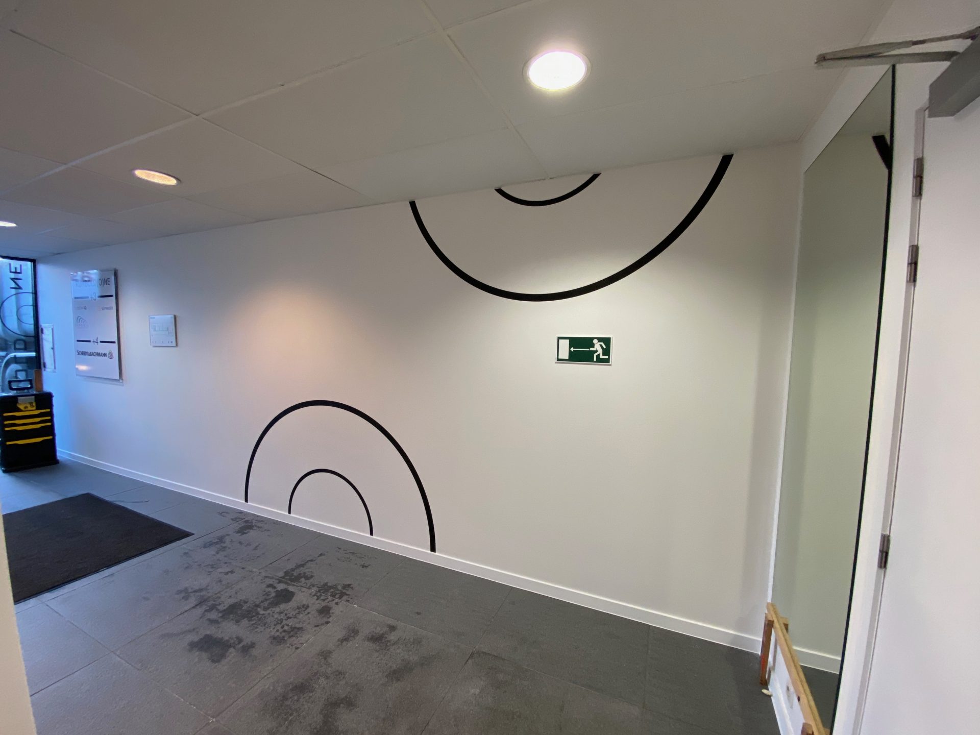 Een mooie belettering met een slogan of een leuke tekst op de muur. Of wil je liever een accentmuur maken met uw logo in het groot op de muur.